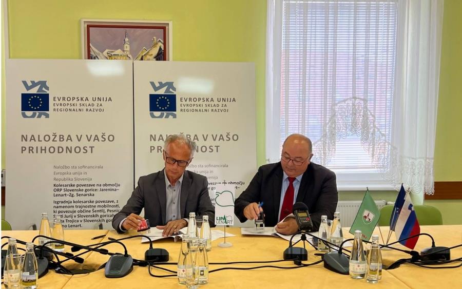 V sredo, 24. avgusta, so v Lenartu podpisali dve gradbeni pogodbi za gradnjo kolesarskih povezav na območju ORP Slovenske gorice.