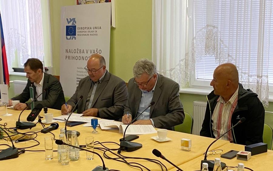 V prostorih Občine Lenart so v ponedeljek, 30. maja, župan Občine Lenart mag. Janez Kramberger in župan Občine Sveti Jurij v Slovenskih goricah Peter Škrlec ter predstavnik izvajalca del, član uprave podjetja Pomgrad, gradbeno podjetje d. d. Boris Sapač podpisali pogodbo za izvedbo gradnje kolesarske povezave na območju ORP Slovenske gorice: Jarenina – Lenart - Zgornja Senarska za traso 13, ki poteka od Lenarta do Jurovskega Dola v dolžini 5.260 metrov.