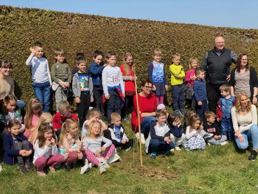Danes, 25. 3., so otroci iz Vrtca Lenart skupaj z županom Lenarta mag. Janezom Krambergerjem pomagali posaditi eno izmed 20 novonasajenih dreves, ki bodo po novem krasila travnato območje med pokopališčem in večstanovanjskimi stavbami ob Jurovski cesti. Ob novi in nadvse zaželjeni pridobitvi so skupaj tudi zapeli.